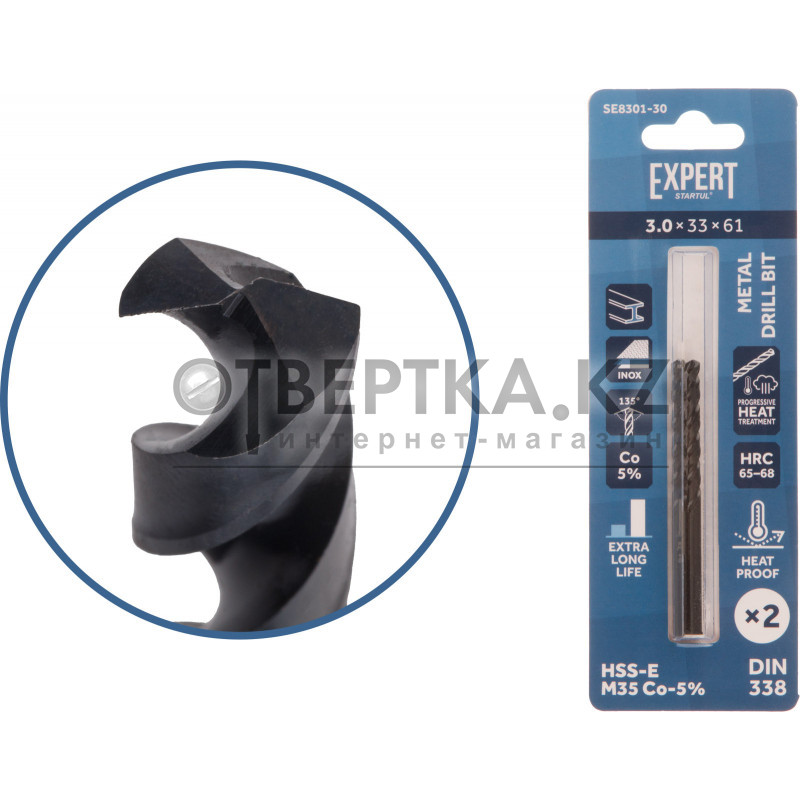 Сверло по металлу ц/х 3.0х33х61 мм HSS-Co, комплект из 2-х шт Black EXPERT STARTUL SE8301-30