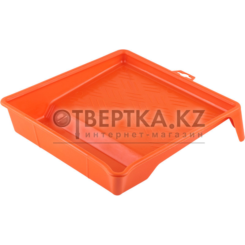 Описание: изделие выполнено из ударопрочного пластика, устойчивого к действию растворителей, позволяет использовать большинство ЛКМ. Конструкция двухуровневая - углубление для краски и рифленая площадка для валика. Изделие оснащено ножками для устойчивости и кронштейном для крепления под крюк,