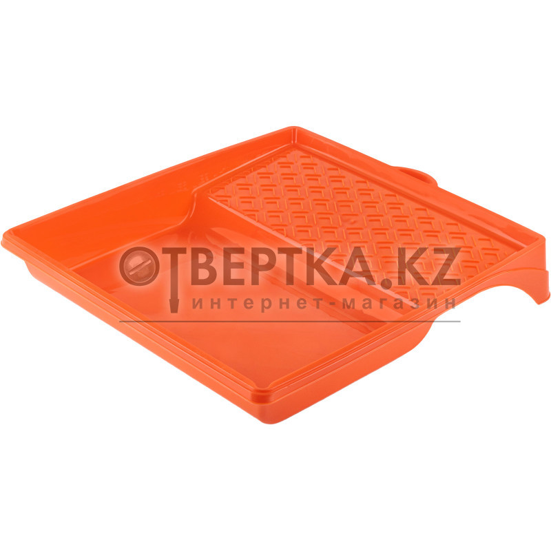 Описание: изделие выполнено из ударопрочного пластика, устойчивого к действию растворителей, позволяет использовать большинство ЛКМ. Конструкция двухуровневая - углубление для краски и рифленая площадка для валика. Изделие оснащено ножками для устойчивости и кронштейном для крепления под крюк,