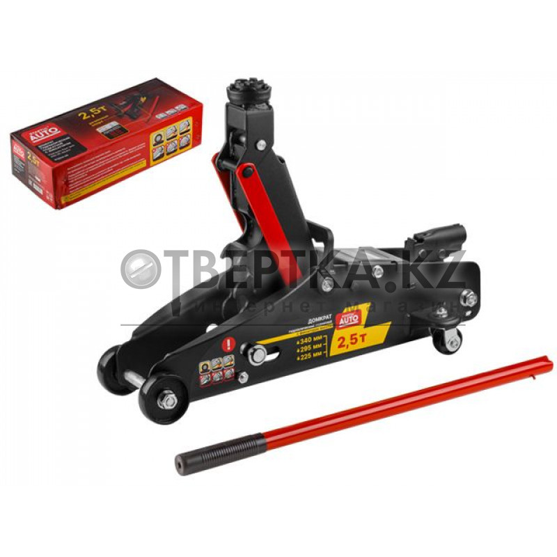 Оснащение: резиновая опора (для защиты груза и самого домкрата от механических повреждений), предохранительный клапан (для защиты от перегрузки), фиксатор подъемного рычага на высоте 225, 295 и 340мм,