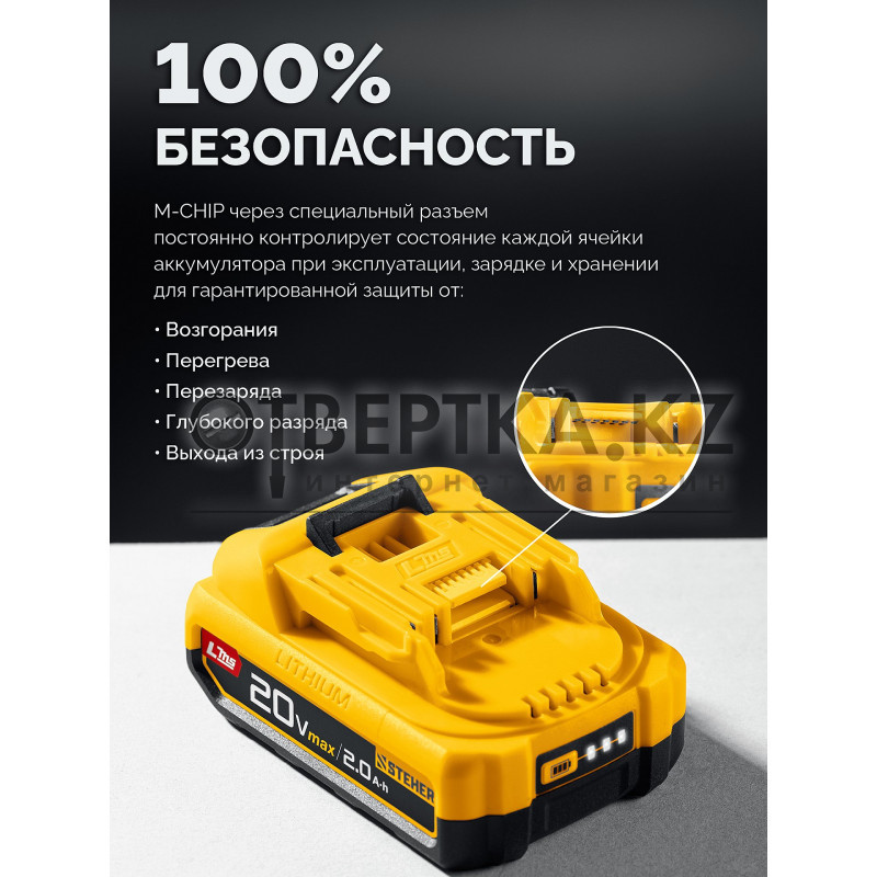 Аккумуляторная батарея для инструмента STEHER системы LMS позволит Вам работать еще дольше и производительнее. Усовершенствованная технология элементов обеспечивает повышенные удельные характеристики и длительный срок службы