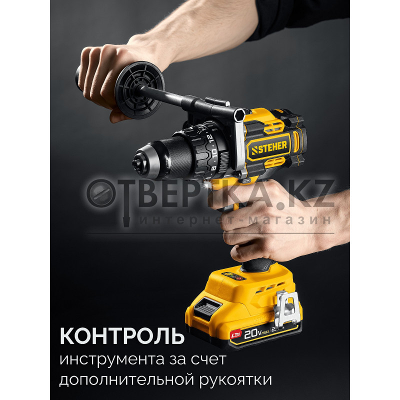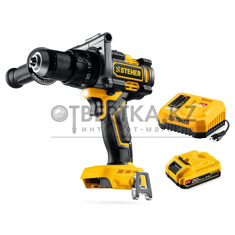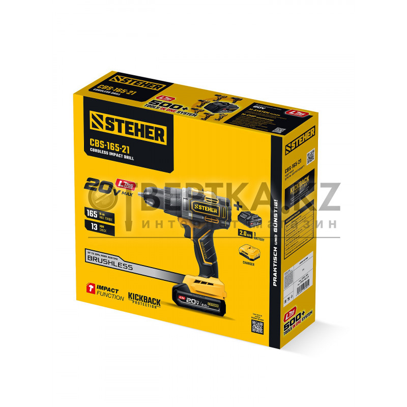 STEHER 20 В, 165 Н·м, 1 АКБ LMS (2 А·ч), бесщеточная ударная дрель-шуруповерт (CBS-165-21)