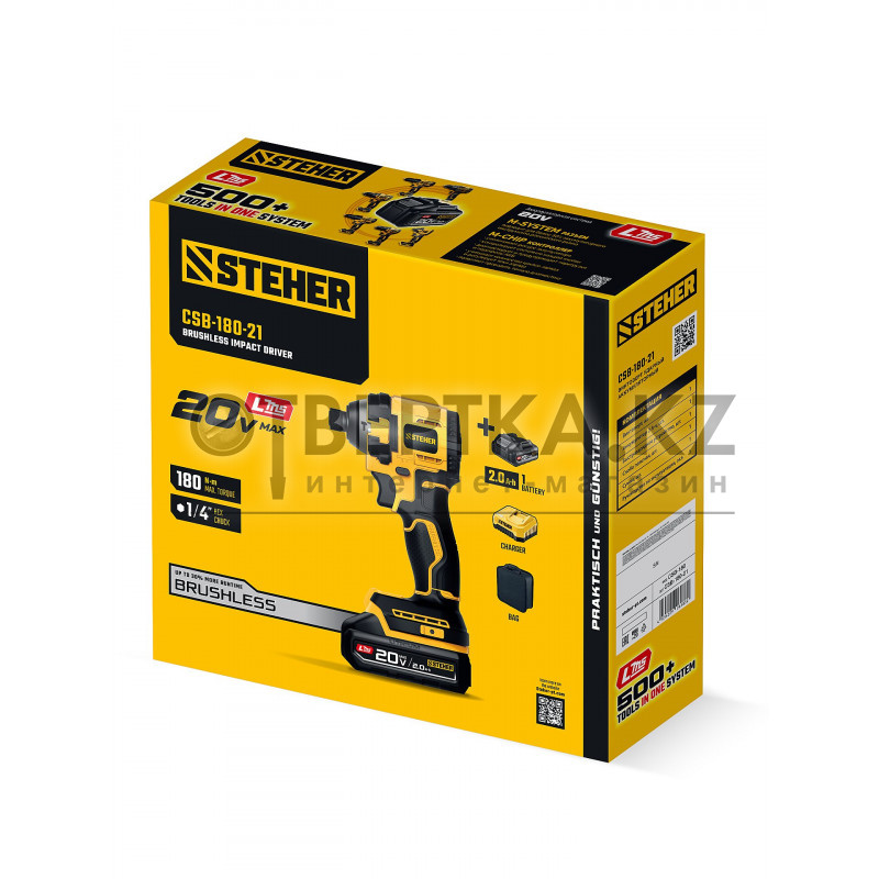 STEHER 20 В, 180 Н·м, 1 АКБ LMS (2 А·ч), бесщеточный ударный винтоверт, сумка (CSB-180-21)