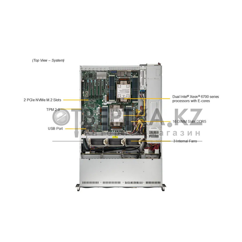 - 16 × слотов DIMM DDR5 ECC RDIMM (до 2 ТБ).