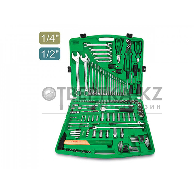 Набор инструментов 14, 12 6 граней 130 предметов TOPTUL (GCAI130T0) состоит из 130 предметов и может использоваться как в быту, так и для ремонта автомобилей в гараже автолюбителя или в профессиональных сервисах. Инструменты набора изготовлены из высококачественной хромованадиевой стали.