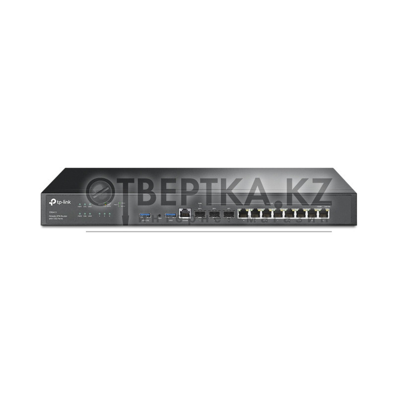 Маршрутизатор VPN TP-Link ER8411 (Маршрутизатор VPN, TP-Link, ER8411, SafeStream Гигабитный VPN-маршрутизатор с 2 портами SFP+ 10 Гбит/с, 1 гигабитный SFP-порт WAN/LAN, 8 гигабитных портов RJ45 WAN/LAN, 1 консольный порт RJ45, 2 USB-порта для создания резервного подключения WAN через USB-модем 3G/4G)