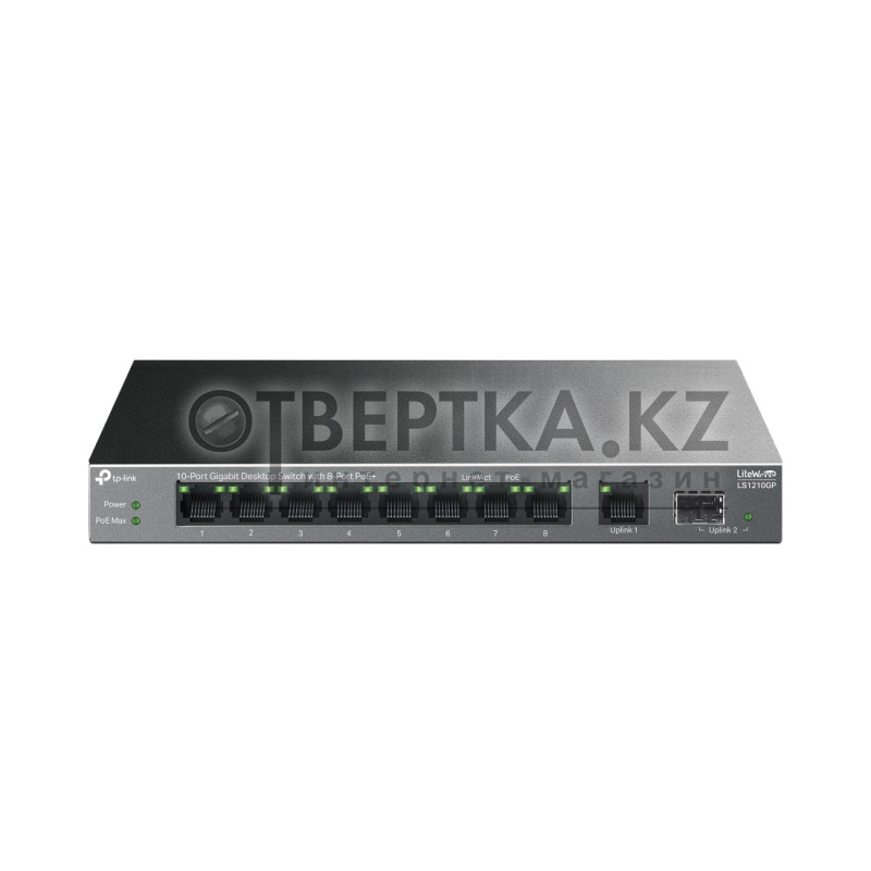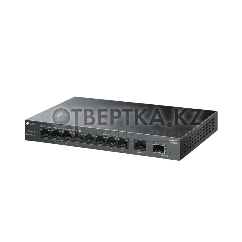 Коммутатор TP-Link LS1210GP (Коммутатор, TP-Link, LS1210GP, 9 портов 10/100/1000 Мбит/с (порты 1–8 поддерживают стандарты 802.3af/at), 1 порт SFP, Бюджет PoE: 61 Вт, настольный)