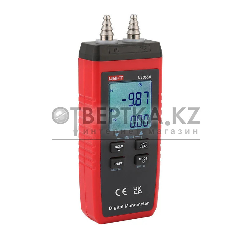 UNI-T UT366A — это прибор для измерения манометрического и дифференциального давления. UT366A может независимо измерять давление P1/P2 со светодиодной индикацией. Он широко используется в промышленном производстве, сантехнике и других отраслях промышленности. В сочетании с дополнительной трубкой Пито UT366A также может измерять скорость ветра.