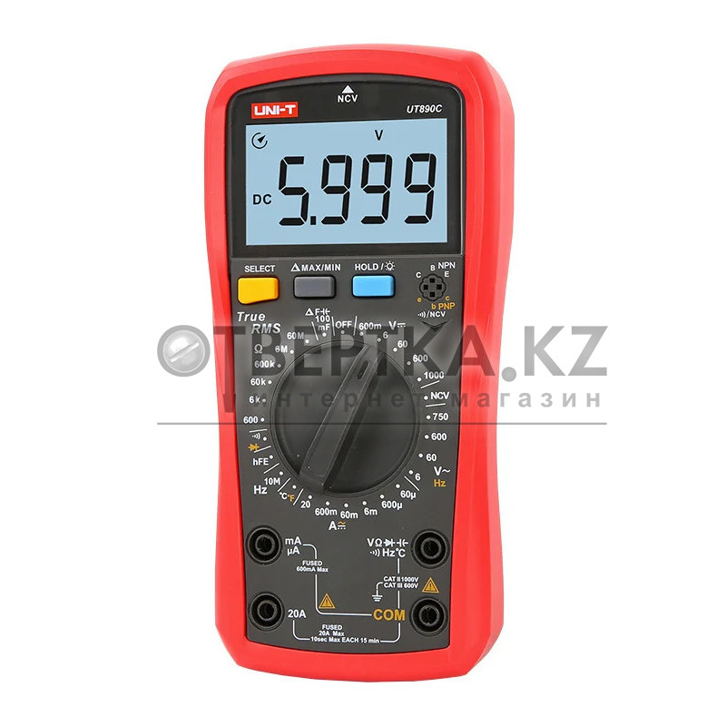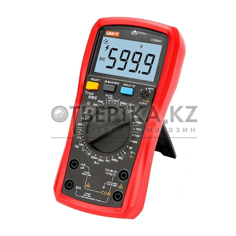 - Цифровой универсальный мультиметр UNI-T UT890C с большим ЖК-дисплеем разрядностью 6000. Имеет звуковое и световое оповещение.