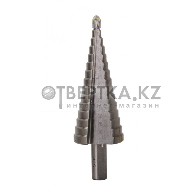 Сверло ступенчатое по металлу 4-32мм, P6M5, трехгранный хвостовик Вихрь 73/10/6/21 предназначено для получения отверстий различного диаметра без перестановки режущего инструмента в изделиях из цветных металлов, тонколистовом металле, твердом пластике, для расширения уже существующих отверстий.
