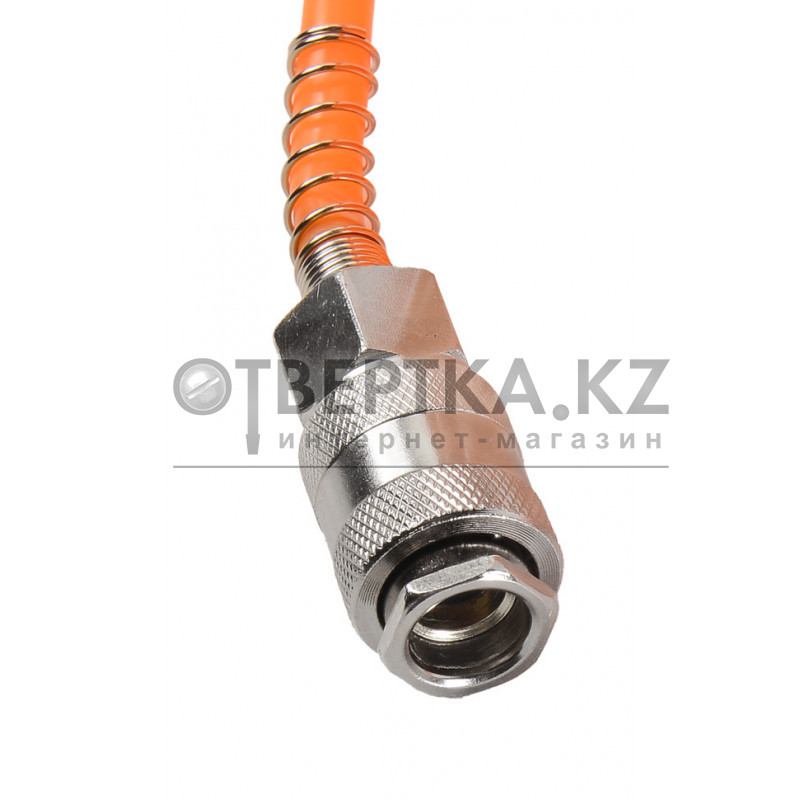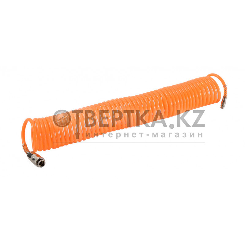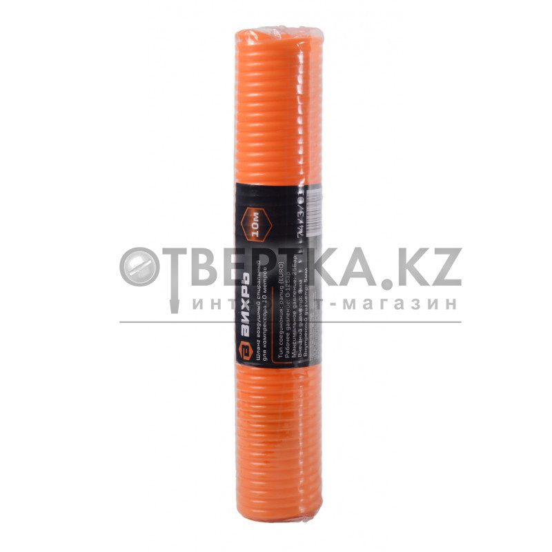 Шланг воздушный спиральный для компрессора 10 метров Вихрь предназначен для подачи сжатого воздуха от компрессора к пневмоинструменту.