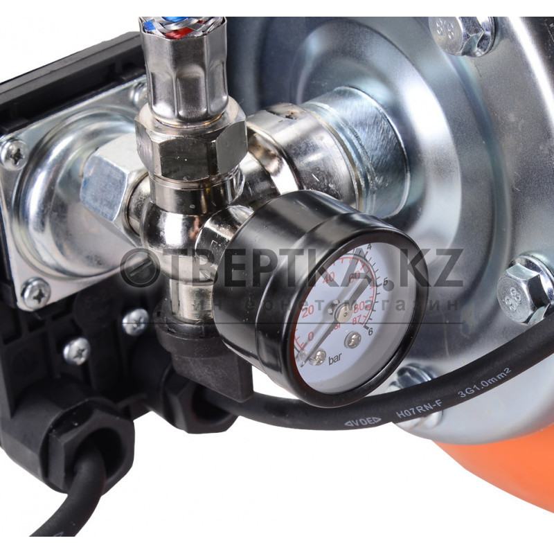 В составе станции применяется гидроаккумулятор мембранного типа объемом 24 л. Накопительная емкость выполняет функцию демпфирования гидравлических ударов и сокращения частоты запусков электродвигателя, которая ограничена 20 циклами в час.