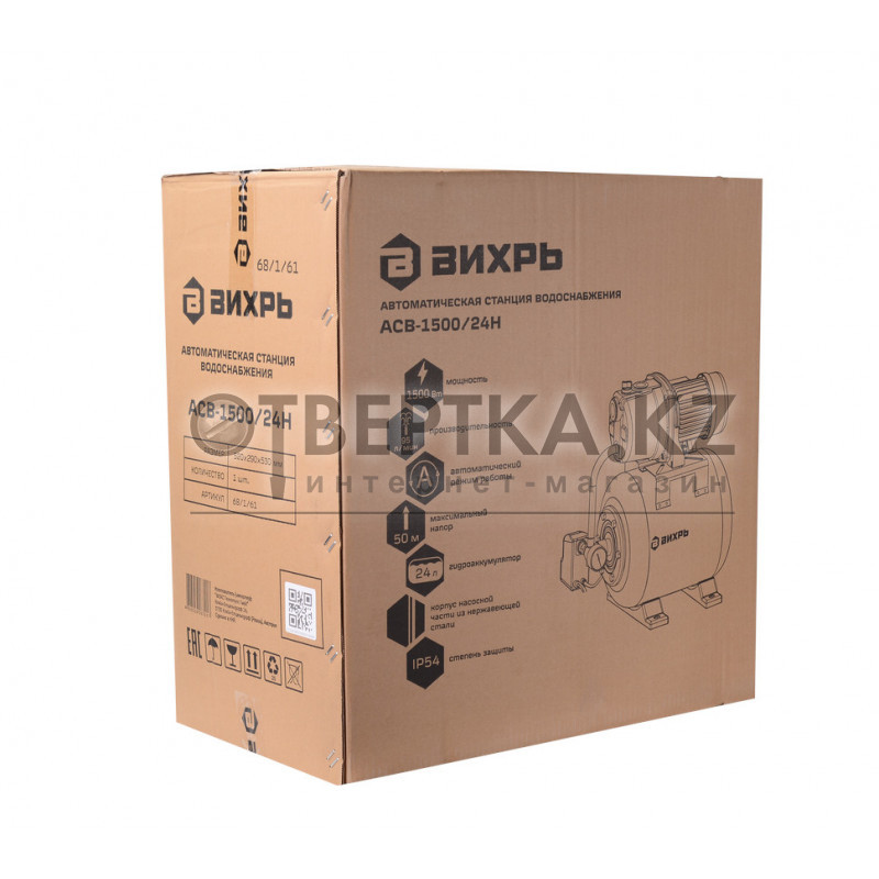 Автономная станция водоснабжения Вихрь АСВ-1500/24Н 68/1/61 (1500 Вт, 5700 л/ч, подъем 50 м, ресивер 24 л)