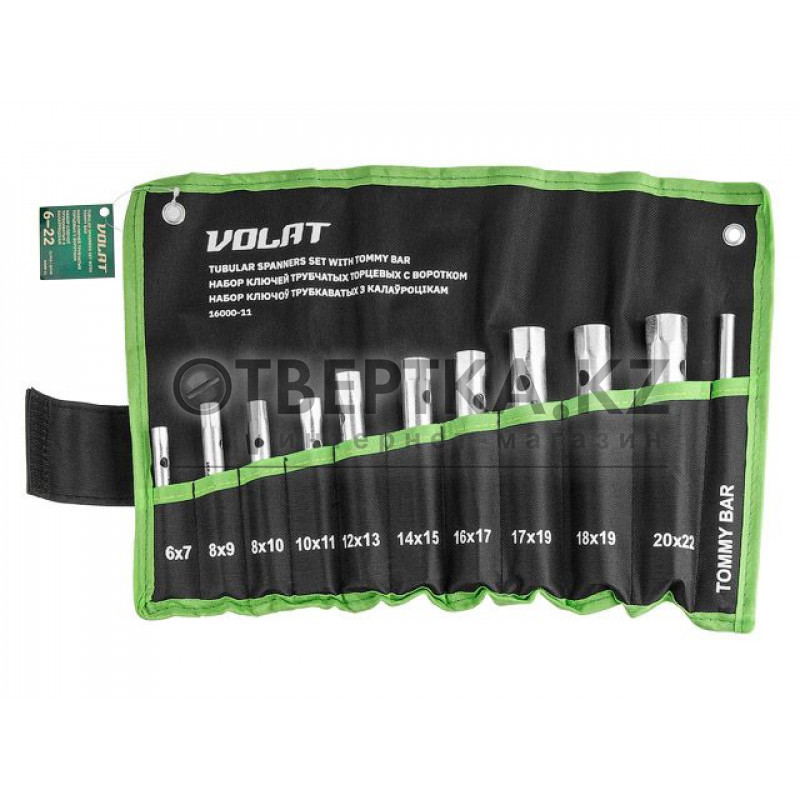 Размеры ключей в комплекте (общая длина), мм: 6х7 (108мм), 8х9 (122мм), 8x10 (121мм), 10х11 (124мм), 12х13 (139мм), 14х15 (145мм), 16х17 (148мм), 17х19 (166мм), 18х19 (166мм), 20х22 (170мм) вороток (190мм),