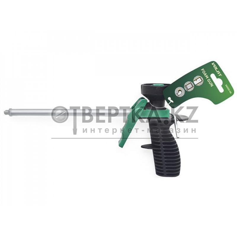 - Назначение: применяется для нанесения монтажной пены, обеспечивая намного более точное дозирование и аккуратное ее нанесение. К тому же пистолет предохраняет содержимое баллона от быстрого затвердевания, позволяя тем самым использовать один баллон спустя значительный промежуток времени (при условии, что он останется подсоединен к пистолету, а клапан подачи пены на пистолете будет перекрыт и не будет доступа кислорода),