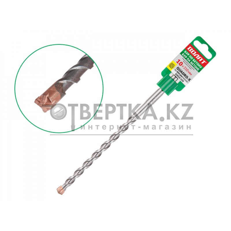 Тип и назначение: бур (сверло) для сверления отверстий в бетоне, кирпичной кладке, камне, граните. Двойной крестообразный наконечник облегчает процесс сверления и образует более ровное (правильной формы) отверстие в обрабатываемом материале,