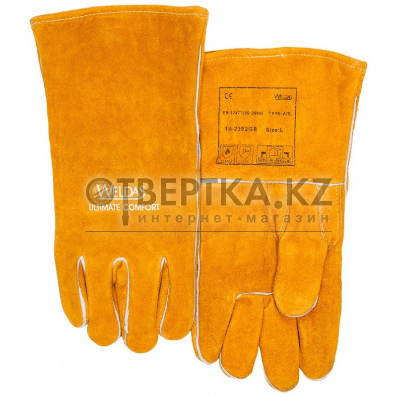 Сварочные перчатки из воловьего спилка с прямым и усиленным большим пальцем для более удобного обращения с горелками MIG.
