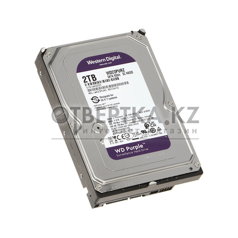 - Жесткий диск WD Purple WD23PURZ HDD 2Tb — это выдающееся решение, разработанное специально для систем видеонаблюдения, где оно проявляет высокую стойкость к сильным перепадам температур и вибрациям, свойственным оборудованию сетевого видеорегистратора. В отличие от обычных жестких дисков для настольных компьютеров, этот продукт предназначен для долгосрочной работы в условиях круглосуточной эксплуатации в системах видеонаблюдения высокой четкости. С жестким диском WD Purple ваша система видеонаблюдения будет работать надежно и эффективно. Его форм-фактор 3.5" обеспечивает удобство установки, а интерфейс SATA III с скоростью передачи данных до 6 Гбит/с гарантирует быструю и стабильную передачу информации. Емкость диска 2 терабайта и внушительный буфер в 256 мегабайт обеспечивают достаточное пространство и ресурсы для надежного хранения больших объемов видеоматериала. Со скоростью вращения шпинделя 5400 оборотов в минуту и уровнем шума на уровне 26 дБ этот жесткий диск обеспечивает плавную и бесшумную работу в любых условиях..