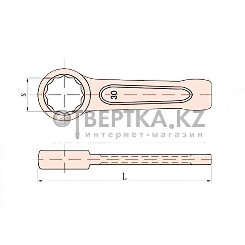 - Взрывобезопасный кольцевой ударный накидной ключ имеет 12-гранную головку с закрытым зевом, и рукоятку с опорно-ударной частью для нанесения ударов.