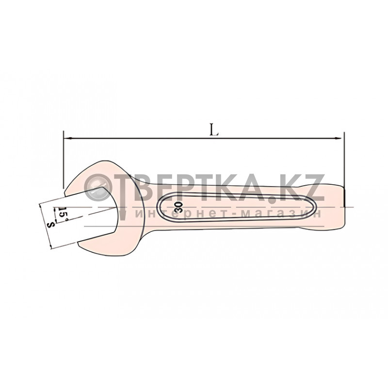 - Ударный рожковый ключ имеет головку с открытым зевом, изогнутую под углом 15 градусов, и рукоятку с опорно-ударной частью для нанесения ударов.