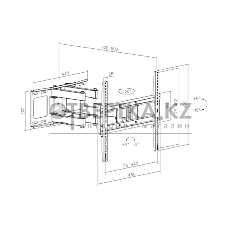 Настенный кронштейн подходит для телевизоров и мониторов с диагональю экрана от 32'' до 55''. Крепление XG FMWA-3275 позволяет менять угол наклона -15° +5°. Угол поворота -60° +60°Допустимая максимальная нагрузка 60 кг. Кронштейн изготовлен из высококачественного металла и имеет самый распространённый размер монтажных отверстий. Крепление адаптировано для простого и быстрого монтажа. В комплекте инструкция на казахском и русском языках.