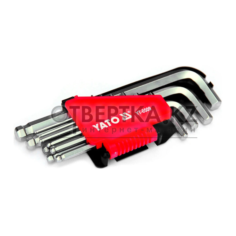 YATO YT-0509 — набор шестигранников, предназначенный для профессионального и бытового применения при сборке и ремонте оборудования, мебели и техники. Ключи выполнены из прочной стали с повышенной твёрдостью и оснащены сферическими головками для работы под углом.