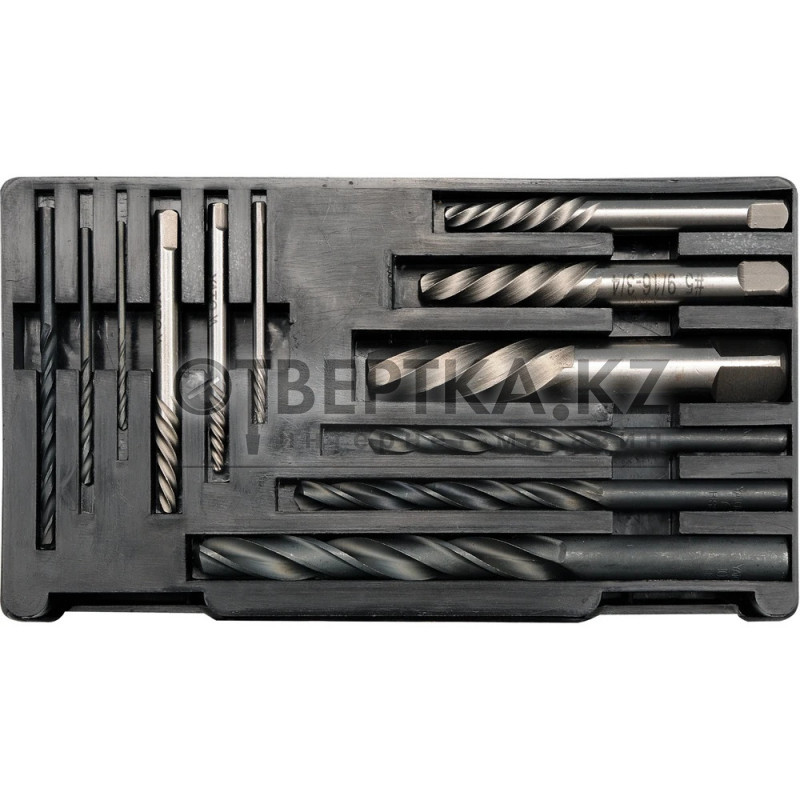 YATO YT-0591 — профессиональный набор экстракторов и сверл по металлу HSS, предназначенный для удаления поврежденного или сломанного крепежа. Набор включает 12 предметов и охватывает диапазон размеров от M3 до M24. Инструменты изготовлены из высококачественной быстрорежущей стали, что обеспечивает долгий срок службы и устойчивость к нагрузкам при работе с металлом.