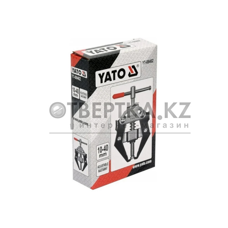 YATO YT-08462 Съёмник аккумуляторных клемм 10-40 мм — профессиональный двузахватный съёмник, предназначенный для работы с аккумуляторными клеммами, хомутами, рычагами стеклоочистителей, подшипниками и втулками диаметром от 10 до 40 мм. Инструмент подходит для автосервисов и производственных цехов.