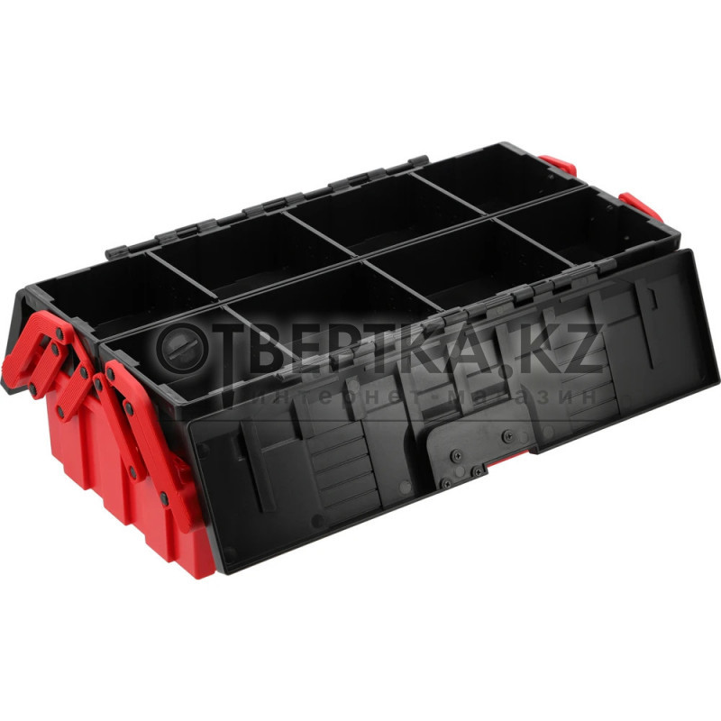 Практичный складной ящик для инструментов YT-08977 изготовлен из прочных и износостойких материалов ABS и PA, обеспечивающих надежную защиту инструментов от ударов и механических повреждений. Он отлично подходит как для работы в мастерской, так и для полевых условий.