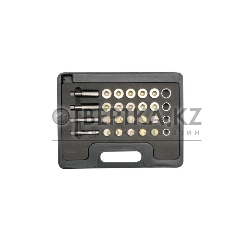 Набор инструментов YATO YT-1757 — предназначен для ремонта масляных пробок и включает 64 предмета. Этот набор идеально подходит для использования в автосервисах и предназначен для работы с различными размерами резьбы. В комплект входят метчики из быстрорежущей стали, пробки для масляного картера и шайбы. После нарезки новой резьбы в картере можно установить пробку из набора, что облегчает работу и повышает её эффективность.