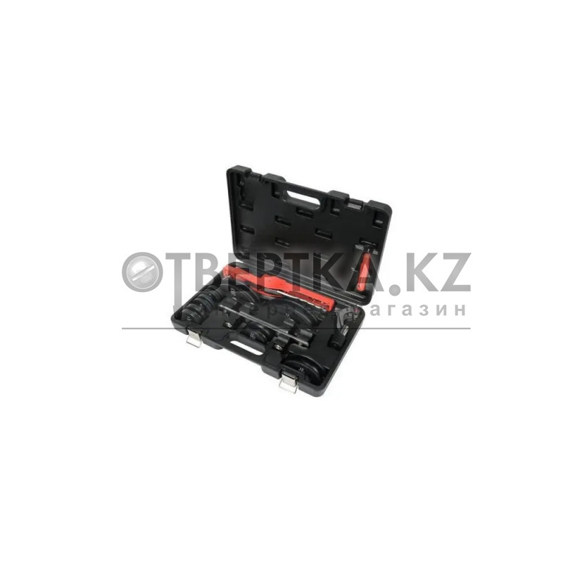 Максимальный угол изгиба 90°, матрицы (нейлон) для труб Ø6/8/10/12/16/19/22 мм, корпус — сталь. Комплект: 7 матриц, труборез Ø3–28 мм, фаскосъёмник.