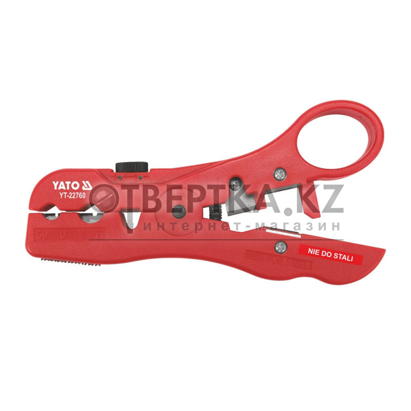 Инструмент для обжима и зачистки проводов YATO YT-22760 — профессиональный ручной инструмент для работы с коаксиальными кабелями, телефонными и сетевыми кабелями, обеспечивающий точную зачистку и обжим проводов.