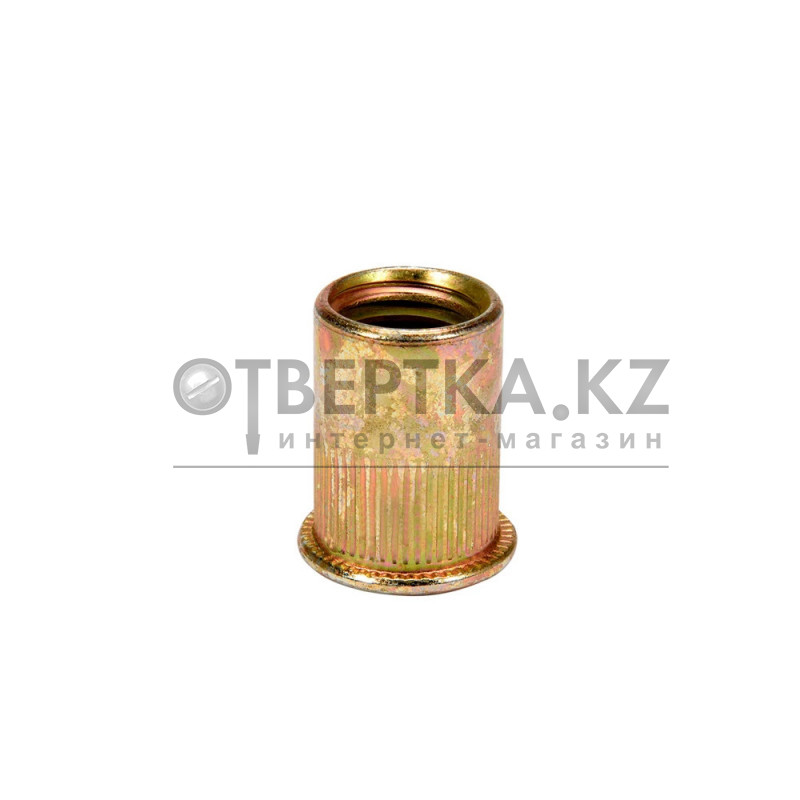 Резьбовая заклёпка с внутренней резьбой M4 YATO YT-36471 оснащена цилиндрическим бортиком с насечкой и внутренней резьбой, что увеличивает сопротивление прокручиванию.