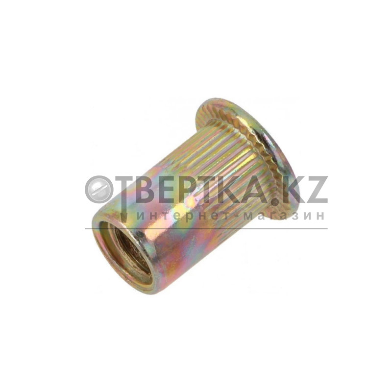 Резьбовая заклёпка с внутренней резьбой M6 YATO YT-36473 оснащена цилиндрическим бортиком с насечкой и внутренней резьбой, что увеличивает сопротивление прокручиванию.