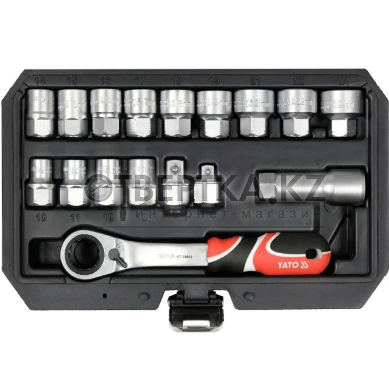 Набор шлицевых насадок 1/2" 3/8" из 17 деталей YATO YT-38653 — набор элементов для работы в автосервисе, слесарном, промышленном и бытовом обслуживании. Изготовлен из прочной хромованадиевой стали для долговечного и надёжного использования.