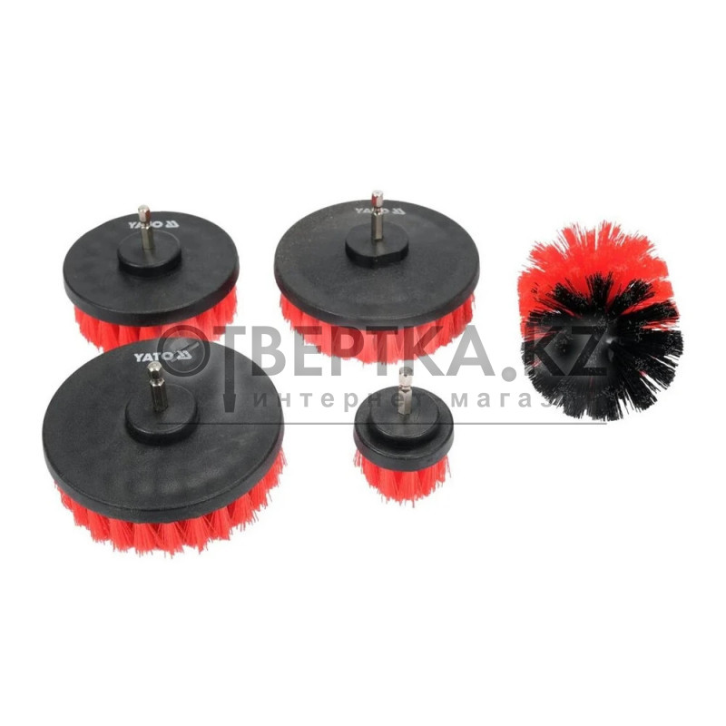 Набор из пяти щеток для дрели YATO YT-47777 с шестигранной ручкой. Щетки предназначены для использования с дрелью и предназначены для различных очистных и полировальных работ.