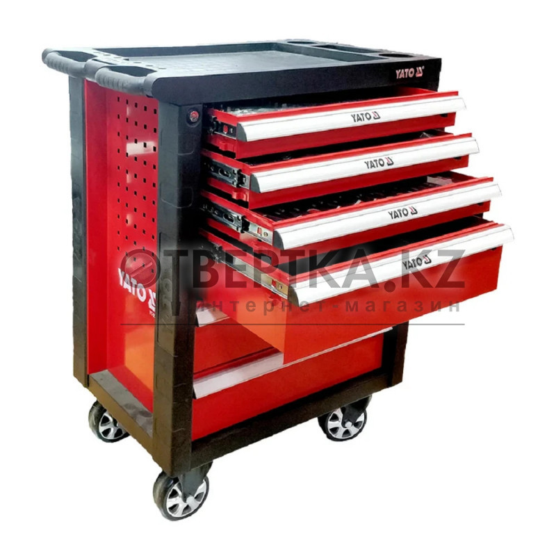 Передвижной инструментальный шкаф YATO YT-55261 в красном цвете — это профессиональное решение для мастерских, автосервисов, СТО и ремонтных центров. Он укомплектован 238 термоформованными инструментами, каждый из которых имеет своё фиксированное место. Благодаря продуманной системе хранения вы больше не потеряете ни одной детали, а порядок будет поддерживаться автоматически.