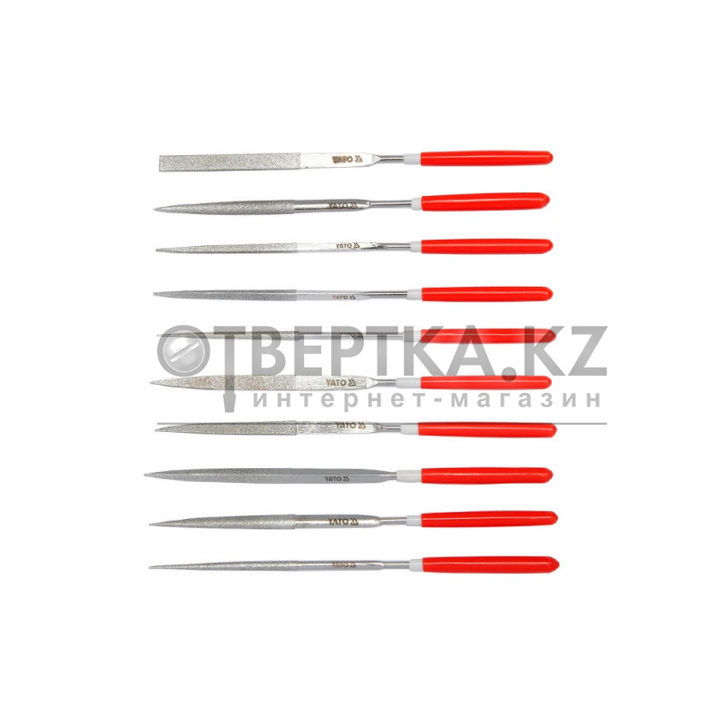 Набор надфилей алмазных 10 предметов 3х140x50мм Yato YT-6144 — комплект надфилей, предназначенных для точной обработки различных материалов. Включает 10 предметов, идеально подходящих для профессионалов.