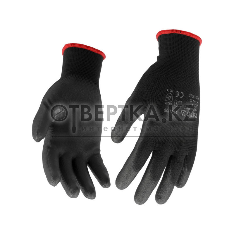 Рабочие перчатки нейлоновые черные 10 дюймов YATO YT-7473 — прочные и удобные перчатки из нейлона с полиуретановым покрытием (ПУ), обеспечивающие надежный захват и защиту рук при выполнении механических и монтажных работ. Идеальны для использования в мастерских, на производстве и в строительстве.