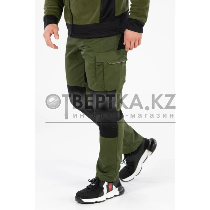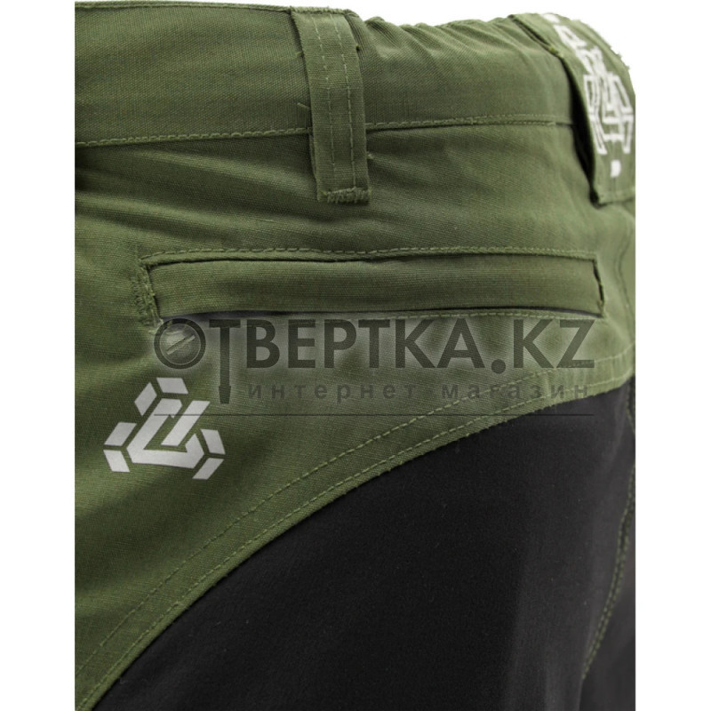 - Организация карманов: два вместительных спереди, один многофункциональный на левой штанине с потайным карманом на молнии, клапаном на липучке и узким карманом для ручки; четыре узких кармана на правой штанине; два больших кармана на молнии сзади.