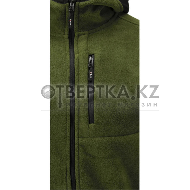 Флисовая куртка с капюшоном YATO YT-79191, цвет сарнский зеленый, размер XL — функциональная и комфортная куртка с капюшоном и пятью карманами, сочетает характеристики рабочей одежды с удобством для активного отдыха. Специальные функциональные зоны и эластичные вставки обеспечивают свободу движений и комфорт при выполнении различных задач.