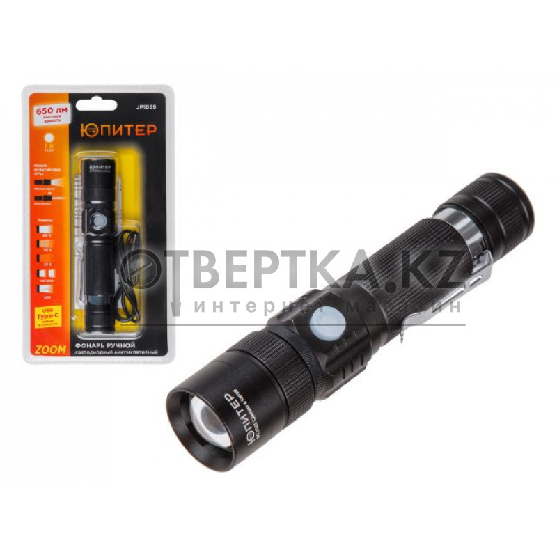 о современный разъем USB Type-C позволяет заряжать фонарик кабелем от телефона, планшета или любого другого устройста,