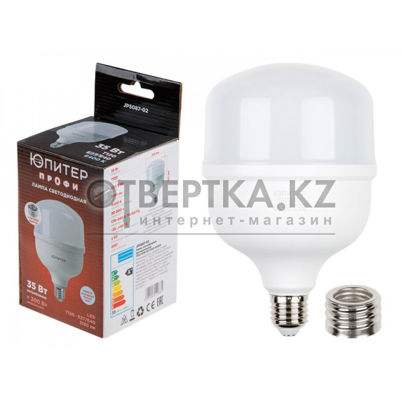 Цветовая температура 6400К - холодный свет для непринужденности, ясности и работоспособности, предназначен в первую очередь для промышленных помещений. Особенно эффективно применять лампы для освещения производственных и складских помещений, гаражей, цехов и других мест, где требуется качественный и яркий источник света. Благодаря наличию переходника в комплекте может использоваться со стандартными цоколями Е27 и Е40.