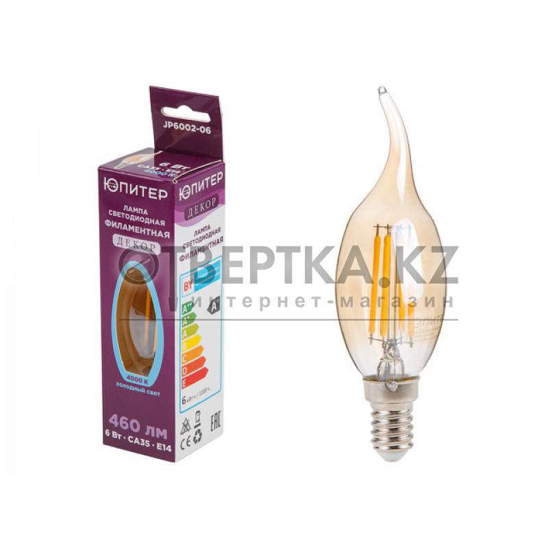 Лампа светодиодная филаментная CA35 СВЕЧА НА ВЕТРУ 6 Вт E14 4000К ЮПИТЕР ДЕКОР JP6002-06