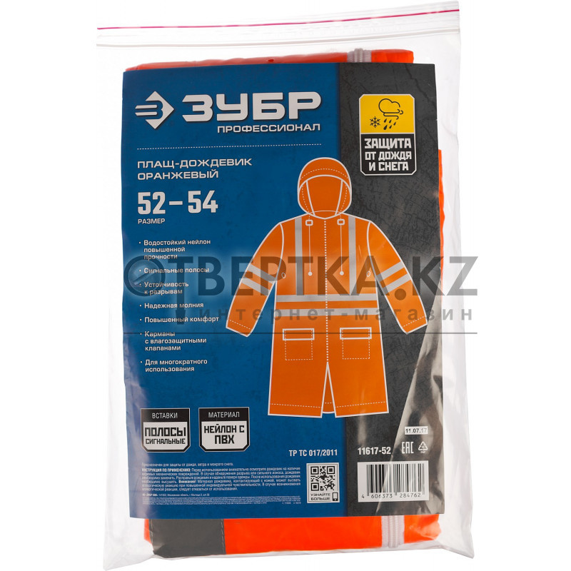 Плащ-дождевик ЗУБР отличается высоким качеством изготовления и повышенной надежностью. Превосходно защищает от сильного дождя, устойчив к загрязнениям и разрывам.