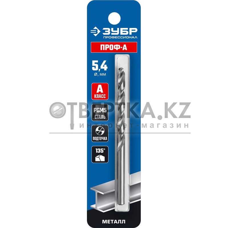 ЗУБР ПРОФ-А, 5.4 х 93 мм, сталь Р6М5, класс А, сверло по металлу, Профессионал (29625-5.4)