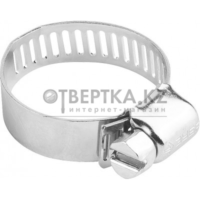 Стальной червячный хомут состоит из штампованной ленты и винта с червячной резьбой. По всей длине ленты имеются просечки, расположенные на одинаковом расстоянии друг от друга. При вращении винта лента сжимается, благодаря чему создается надежное и герметичное соединение шлангов, различных труб, и т.д. Червячный винт снабжен шестигранной головкой под ключ 8 мм и шлицем SL, что позволяет использовать при монтаже гаечный ключ или шлицевую отвертку.