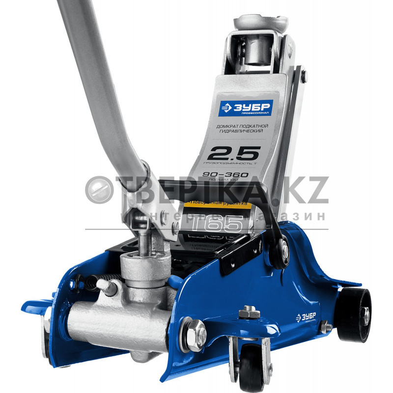 ЗУБР Т-65, 2.5 т, 90 - 360 мм, подкатной домкрат с низким подхватом и поворотной ручкой, Профессионал (43057-2.5)