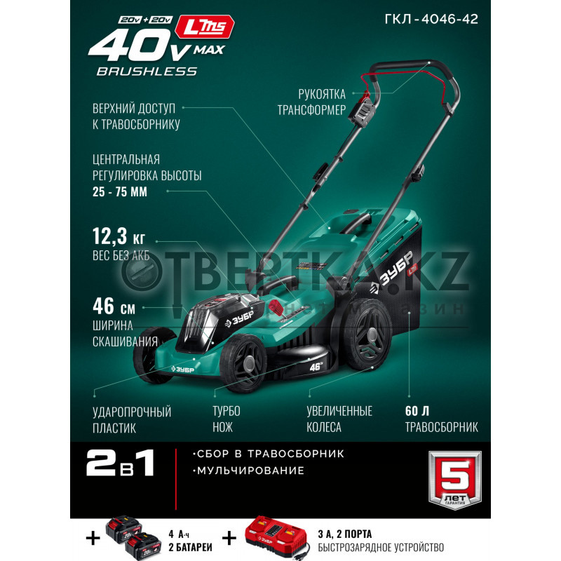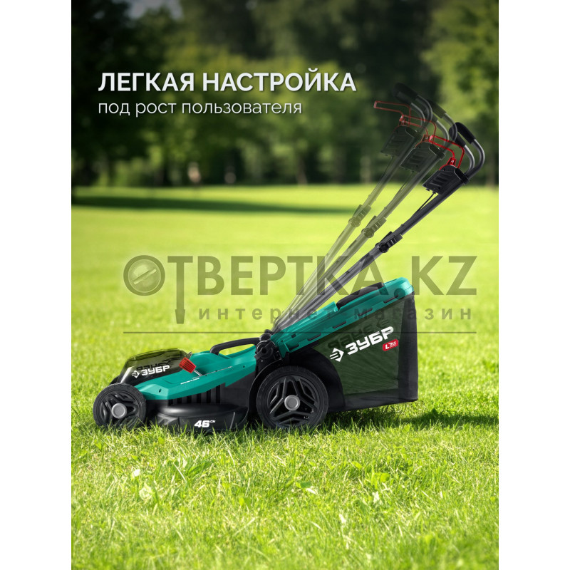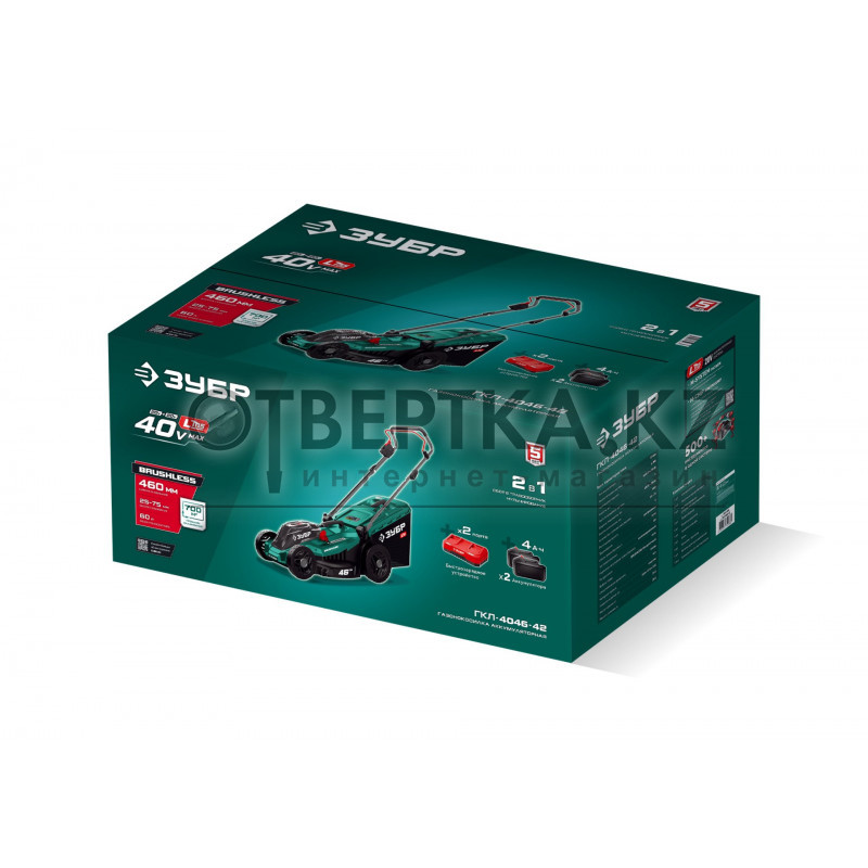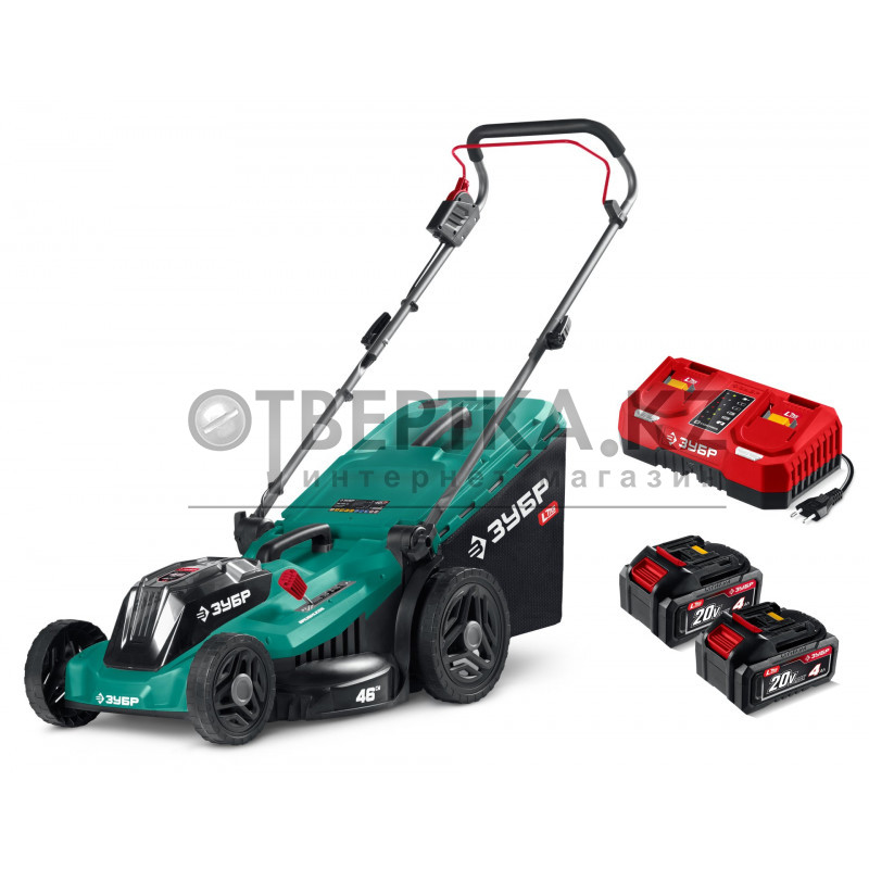 ЗУБР 40 В (2x20В), 460 мм, 2 АКБ LMS (4 Ач), газонокосилка аккумуляторная бесщеточная (ГКЛ-4046-42)