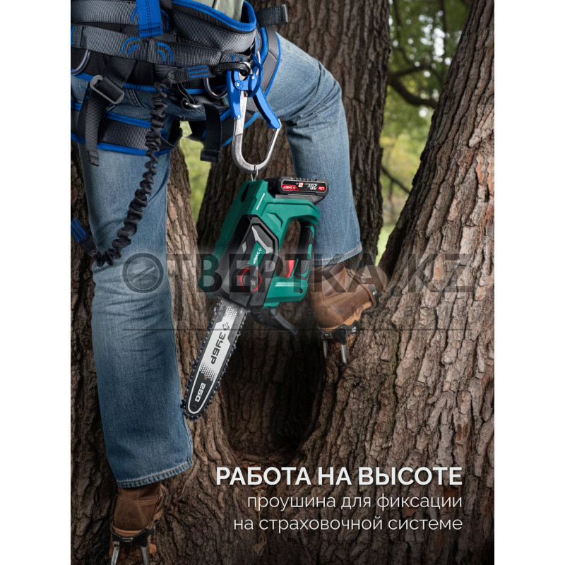 Компактная аккумуляторная цепная пила ЗУБР — идеальный инструмент для садоводов и строителей. Она отлично подходит для обрезки веток, пиления небольших деревьев и выполнения различных строительных и ремонтных работ. Благодаря мощному BRUSHLESS двигателю и качественной цепи, вы сможете быстро и эффективно справляться с любыми задачами. Особое внимание стоит уделить ее компактным размерам и удобному крючку, что делает пилу незаменимой для высотных работ. Легкость и маневренность инструмента позволяют легко добраться до труднодоступных мест, а крючок обеспечивает надежное крепление, освобождая ваши руки для других задач.